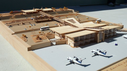 Lobby look over of the Grand Canyon National Park Airport operations building. Green architecture and contemporary designs. Public works. station design. LEA Architects in Phoenix AZ. 85020