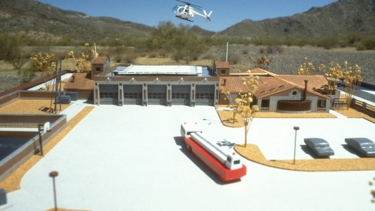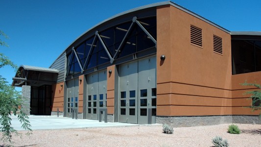 apache junction fire station 264. fire station design. public works. exterior building scale. fire service. LEA architects based in Phoenix AZ. Sustainable and modern design.