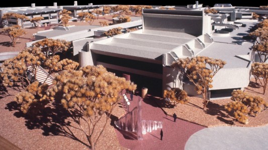 Outside planning and development for the Dan Graham Art Installation at the Phoenix Art Museum. Design process. Phoenix architects. LEA Architects.
