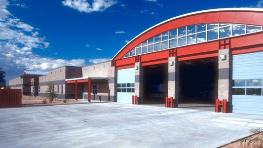 flagstaff fire station no. 6 front elevation. sustainable and contemporary design elements included. LEA Architects. Phoenix architects