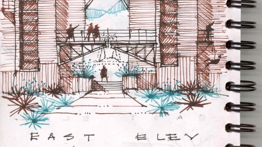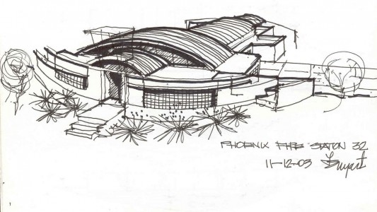 initial sketch and stage of the architectural planning process for design. central yavapai fire training center. fire service and public safety. sustainable and modern practices and designs. lea architects. phoenix architecture.