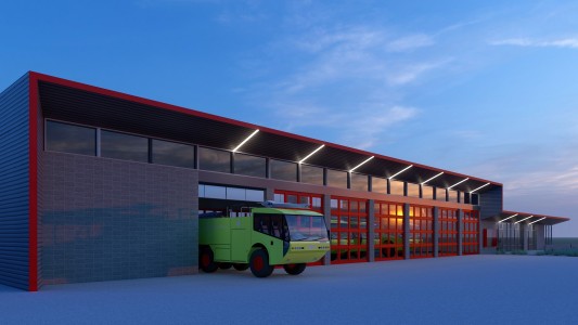 Charleston West Virginia ARFF. fire service and public safety. lea architects. phoenix architecture firm. public works for community benefit. sustainable and modern design and ideals.