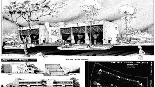 aerial view for the east yard multipurpose building and storage unit. sustainablity and contemporary design remains as a top priority for LEA Architects.